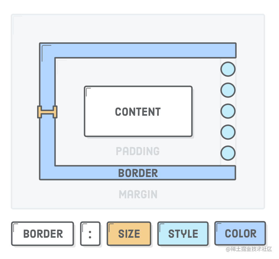 一次性设置了宽度、样式和颜色。但有时候分开设置更有灵活性,特别是当你需要不同边框有不同的样式时。